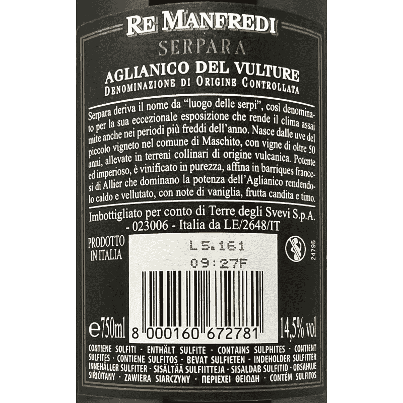 Aglianico del Vulture Superiore Serpara DOCG 2010 - Terre degli Svevi