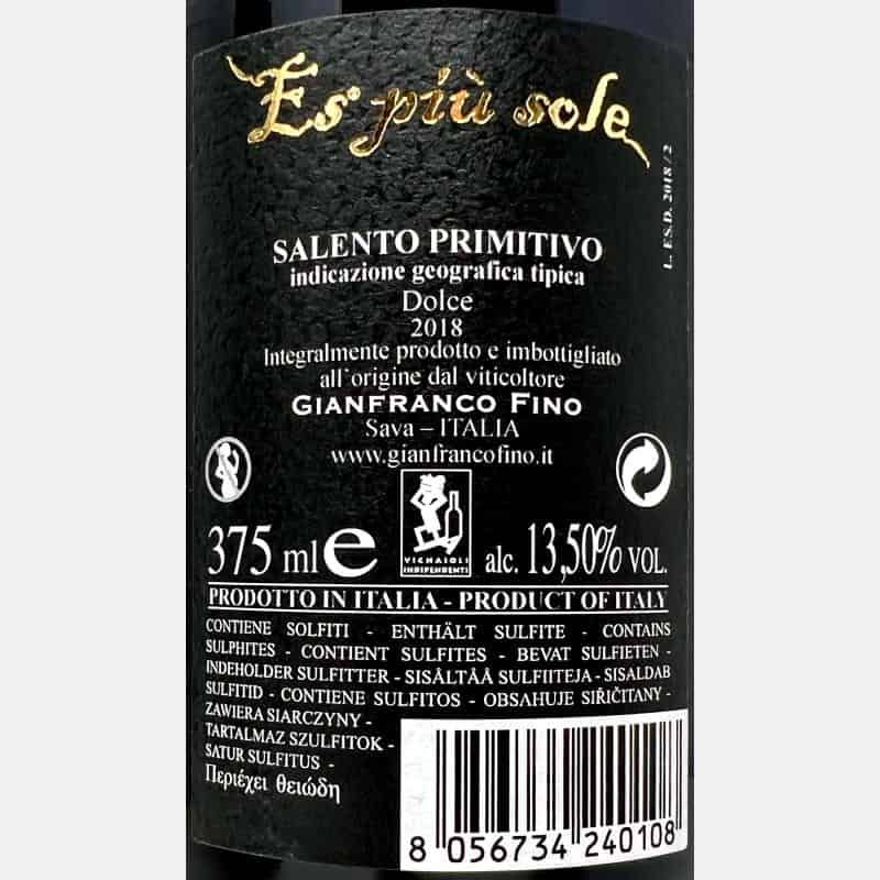 Primitivo Salento Dolce Es Più Sole IGT 2018 Half 0,375L - Gianfranco Fino