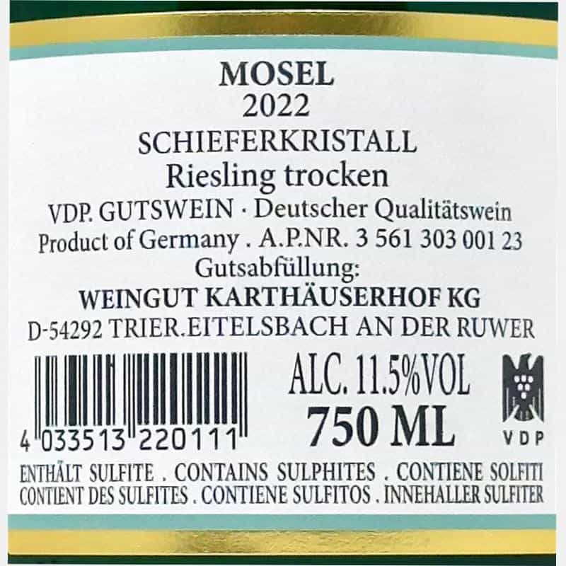 Riesling Mosel Schieferkristall trocken VDP 2022 - Karthauserhof