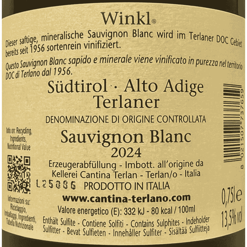 Sauvignon Blanc Winkl Alto Adige Terlano DOC 2024 - Cantina Terlan