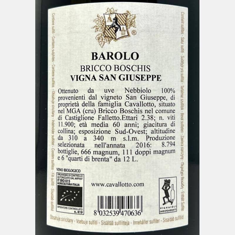 Barolo Riserva Bricco Boschis Vigna San Giuseppe DOCG 2016 Bio Magnum 1,5L - Cavallotto