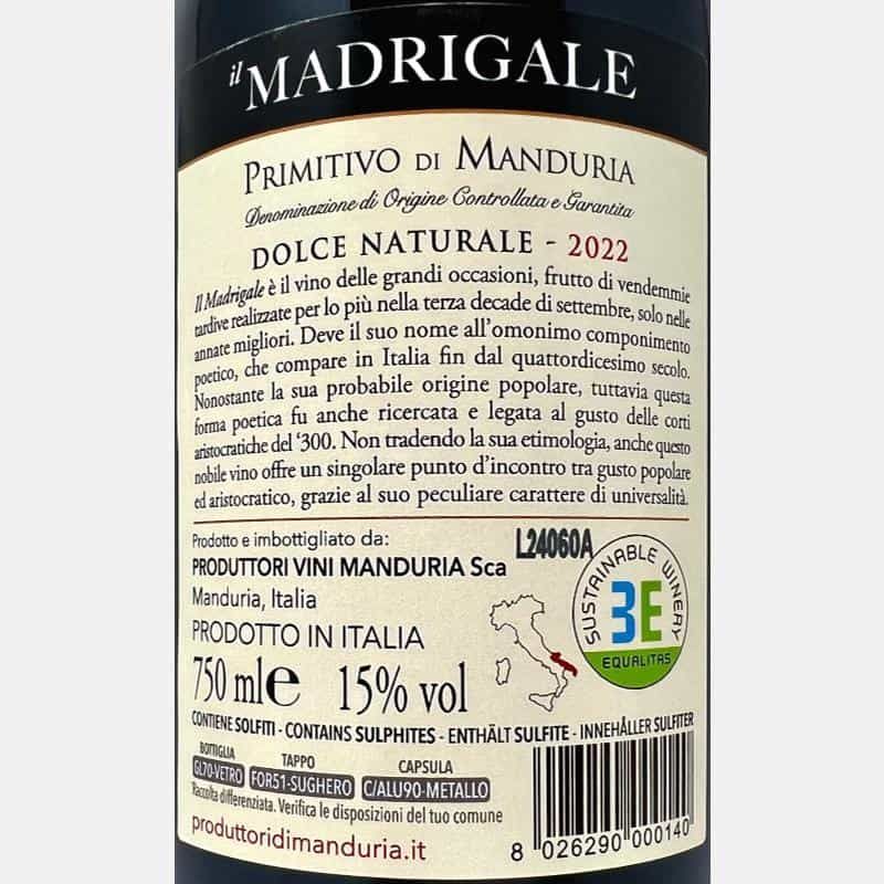 Primitivo di Manduria Dolce Naturale Madrigale DOCG 2022 - Produttori di Manduria