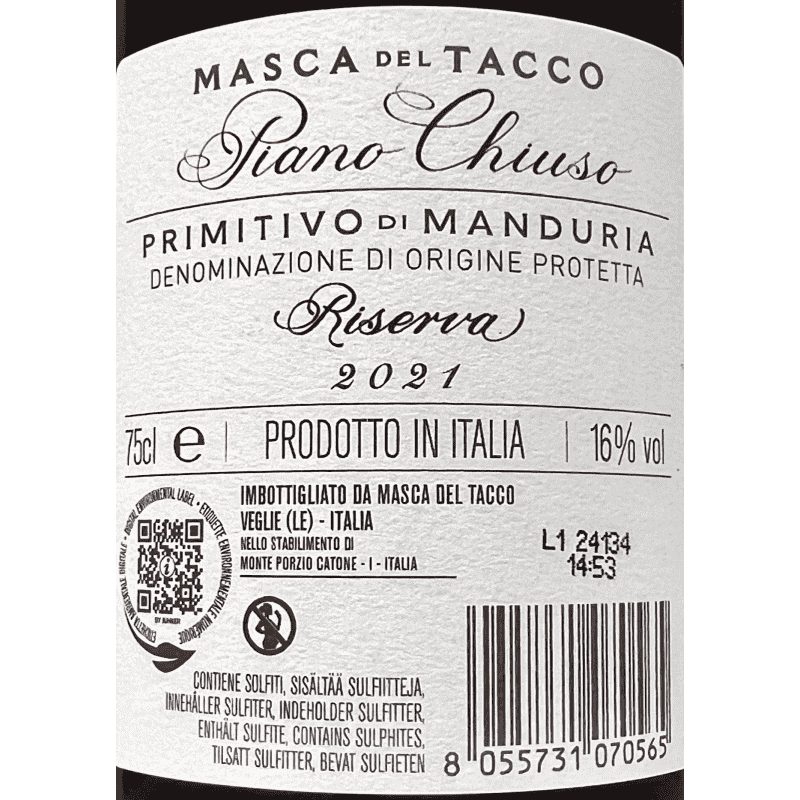 Primitivo di Manduria Riserva Piano Chiuso DOC 2021 - Masca del Tacco