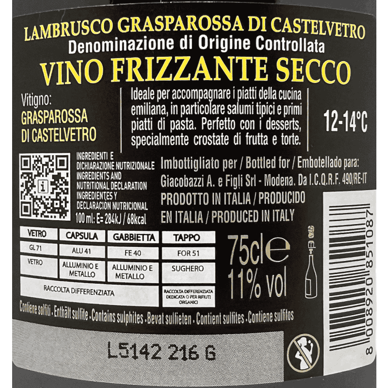 Lambrusco Grasparossa di Castelvetro 2 Secco DOC - Giacobazzi