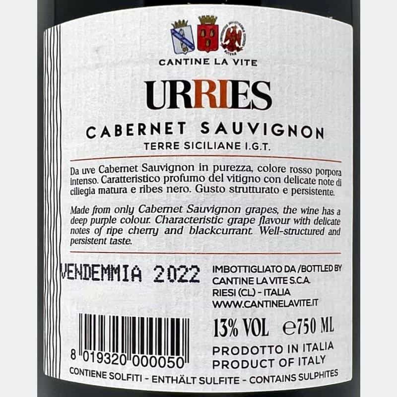 Cabernet Sauvignon Urries Terre Siciliane IGT 2022 - Cantine La Vite