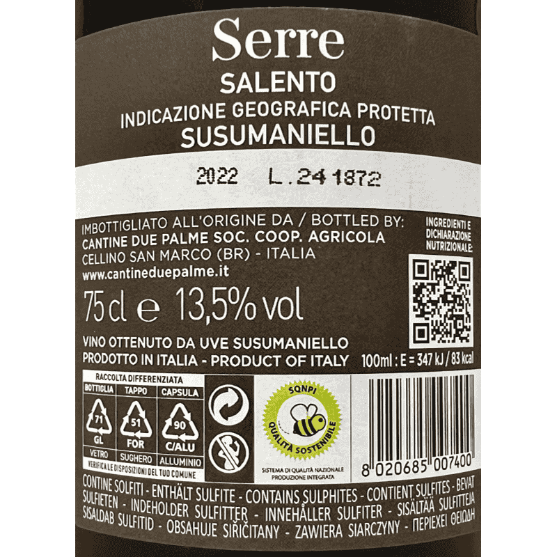 Susumaniello Serre Salento IGP 2022 - Cantine Due Palme