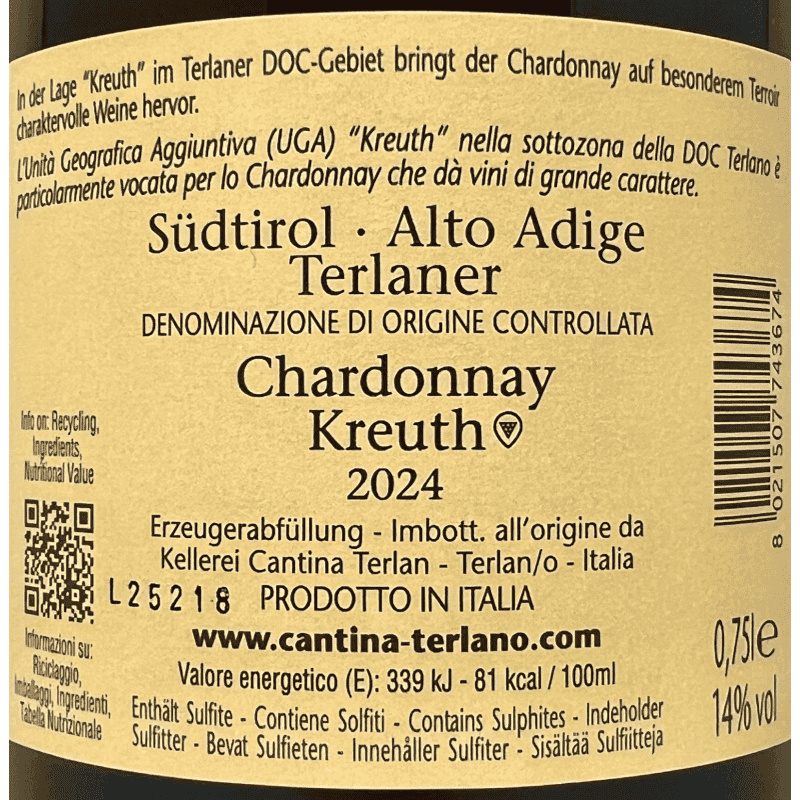 Chardonnay Kreuth Alto Adige Terlano DOC 2024 - Cantina Terlan