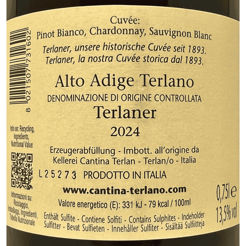 Terlaner Cuvée Alto Adige DOC 2024 - Cantina Terlan
